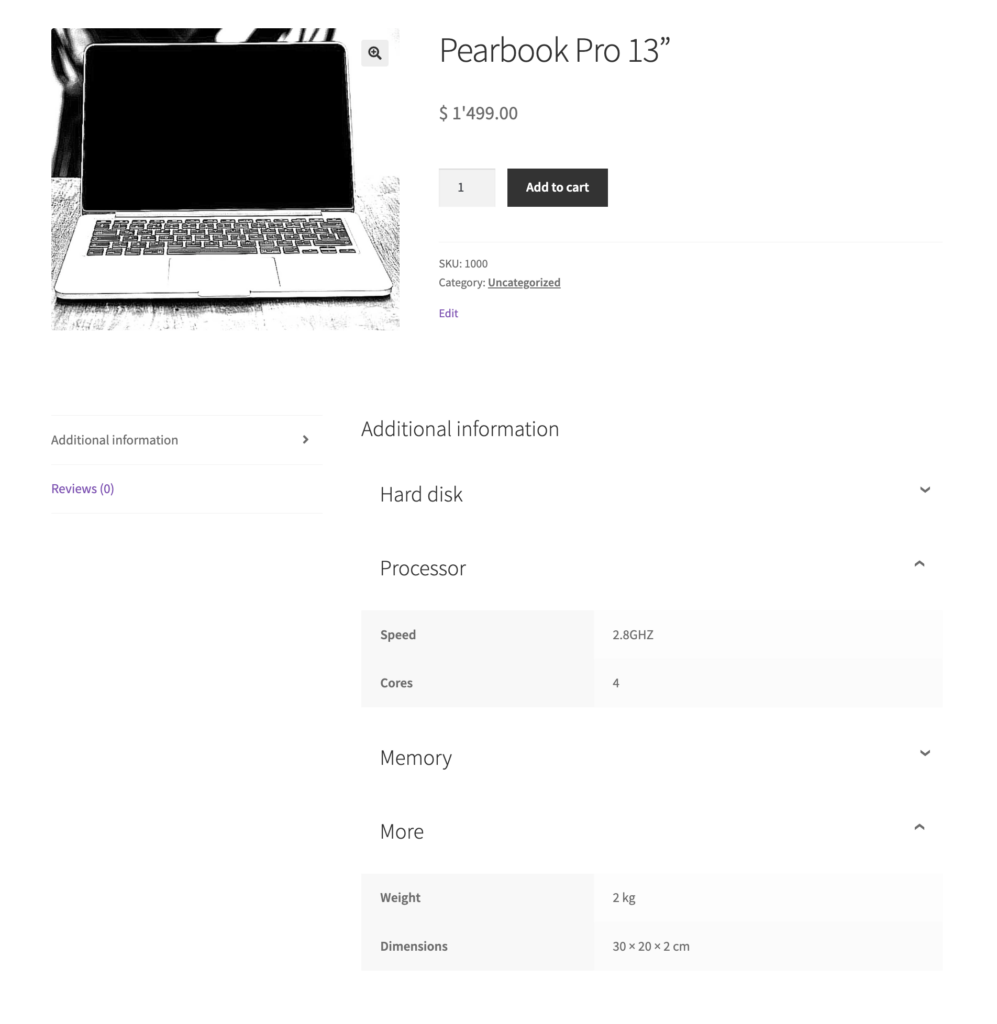 Add the attribute groups wherever you like on the website with Shortcodes. Supported parameters are: layout option, product id, attribute group ids. You can choose to show a specific product by its id, or always show the recent product. With WooCommerce Group Attributes you will get all the flexibility. Please find more details about how to use the Shortcodes in our helpdesk
