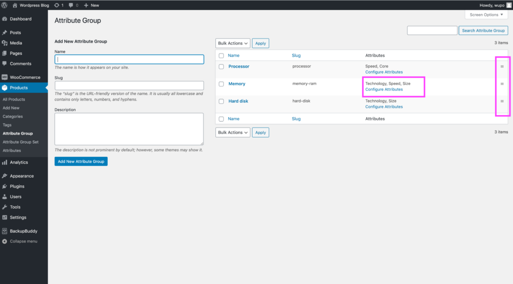 Assign product attributes to individual groups for better visual appearance and clearer communication of the properties of your products